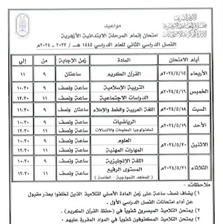هام وعاجل 📢 الإعلان عن جداول امتحانات الفصل الدراسي الثاني" النسخة المعتمدة " للمرحلة "#الابتدائية و #الإعدادية و #الثانوية و #القراءات و #البعوث و #طلاب البرنامج التأهيلي" الأزهرية للعام الدراسي ٢٠٢٣ / ٢٠٢٤ م #الأزهر_الشريف #قطاع_المعاهد_الأزهرية #المركز_الإعلامي_التعليمي